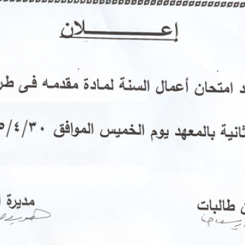 اعلان عن عقد امتحان اعمال السنة لمادة مقدمة فى طرق البحث للفرقة الثانية بالمعهد
