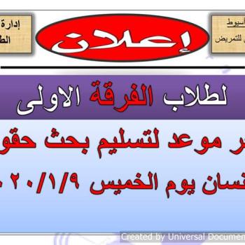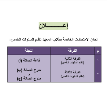 بشأن تعديل جداول الفرقة الأولى بالمعهد