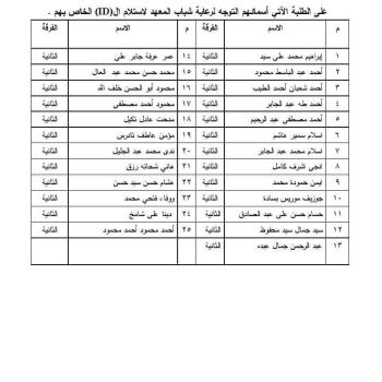 على الطلاب الأتى أسمائهم التوجه لرعاية الشباب