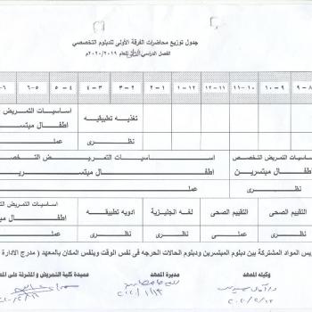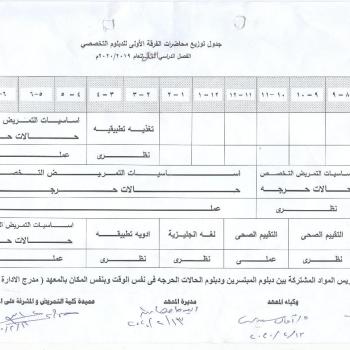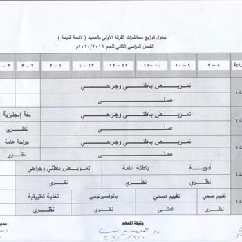 (جدول محاضرات الفرقة الأولى بالمعهد(لائحة حديثة