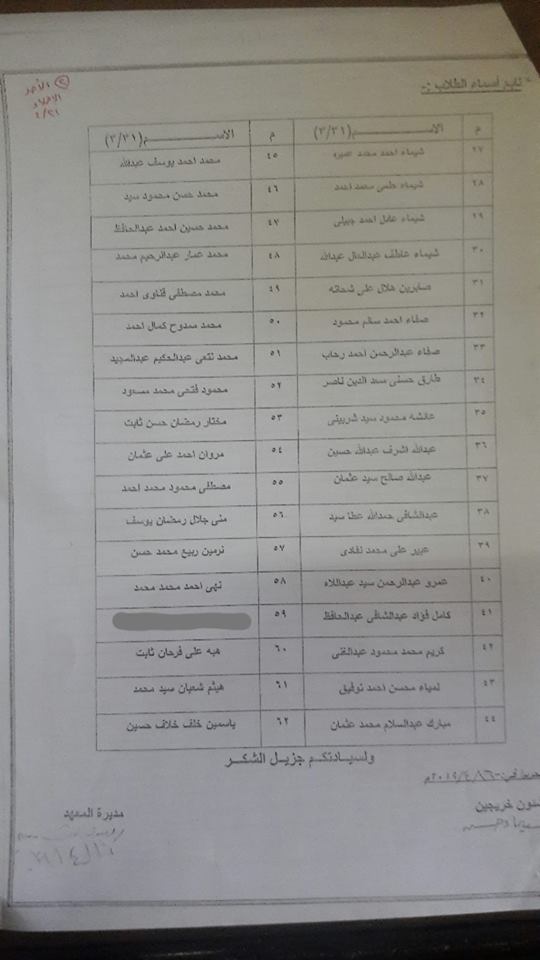 على طلاب الامتياز الآتى أسمائهم عمل اخلاء الطرف من المستشفى