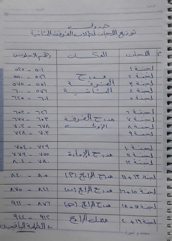 توزيعة لجان الفرقة الثانية بالمعهد
