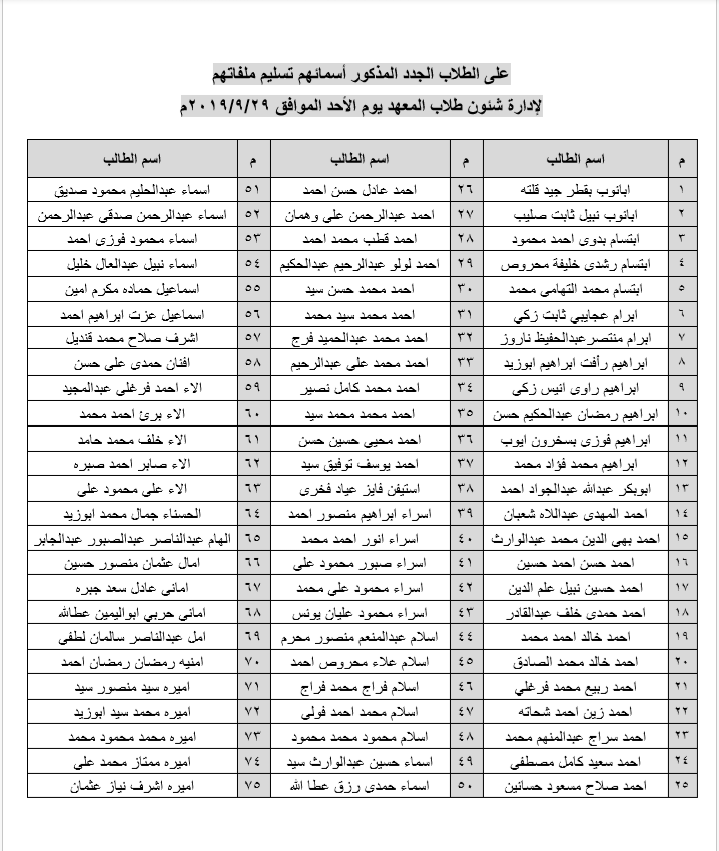 The new students mentioned in their names will hand over their files to the Department of Student Affairs of the Institute on Sunday 26 September 2019 The new students mentioned in their names will hand over their files to the Department of Student Affairs of the Institute on Sunday