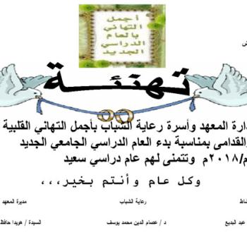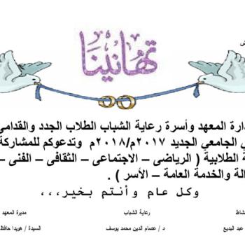 The names of students admitted to the Institute from the preparatory certificate campaign for the academic year 2017/2018