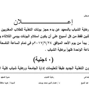 Announcement of the start of the reservation of the nutrition of the expatriate students