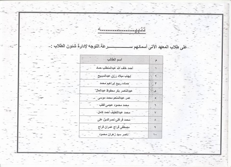 To the students of the Second Division at the Institute, whose names come tomorrow to the students ' affairs for the importance of them.