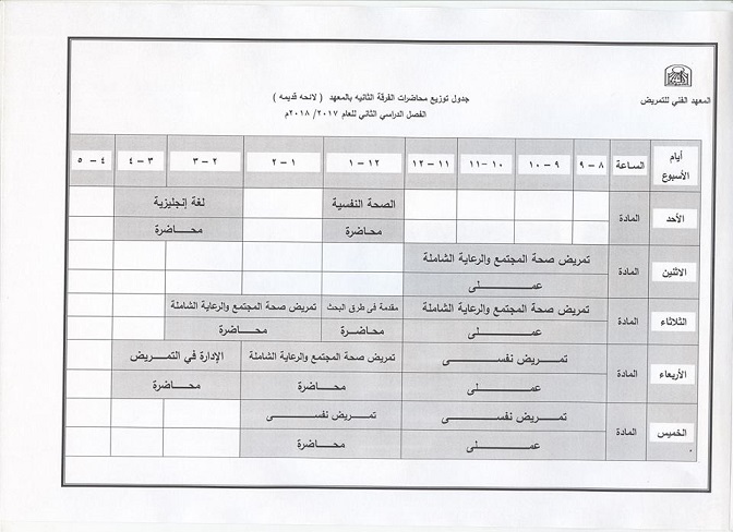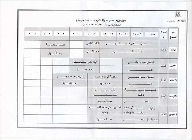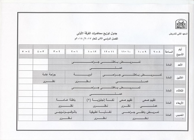 First Division lectures distribution schedule for the second semester of the academic year 2017/2018