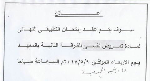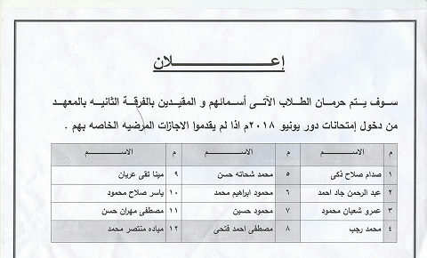 We inform the students of the Second Division of the Institute (boys) that the deadline for the submission of the military course is Monday, 10/9/2018 CE.Please note that students who do not want the military education course will not complete the period of the concession or college and will be suspended from their graduation certificates and take them for a full year from the rest of their payment for information.