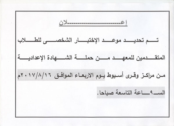 Personal test date for students applying to the institute from the Preparatory certificate campaign Read more about Personal test date for students applying to the institute from the Preparatory certificate campaign Personal test date for students applying to the institute from the Preparatory certificate campaign 19 September 2017