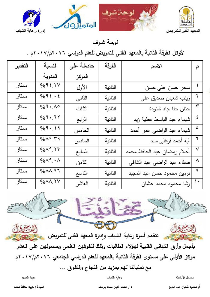 Congratulations to the first team at the Technical Institute of Nursing for the academic year 2016/2017 Read more about Congratulations to the first team at the Technical Institute of Nursing for the academic year 2016/2017 Congratulations to the first team at the Technical Institute of Nursing for the academic year 2016/2017 20 September 2017