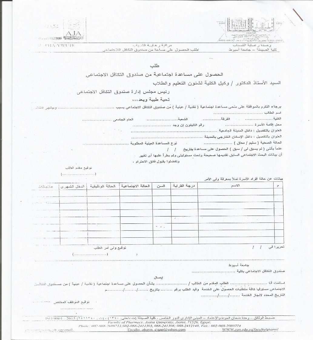 • The Faculty of Pharmacy opens the Social Fund payments twice in the first academic year: at the beginning of the first semester and at the beginning of second semester.
