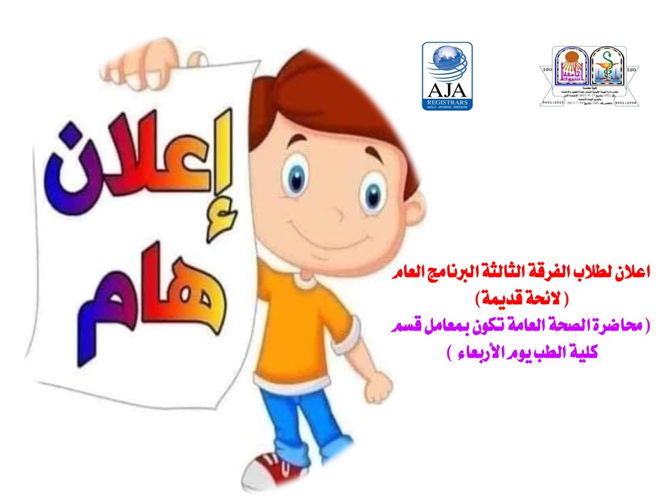 Announcement for students of the third year of the pharmaceutical sciences program (the public health lecture will be held in the laboratories of the Faculty of Medicine on Wednesday)