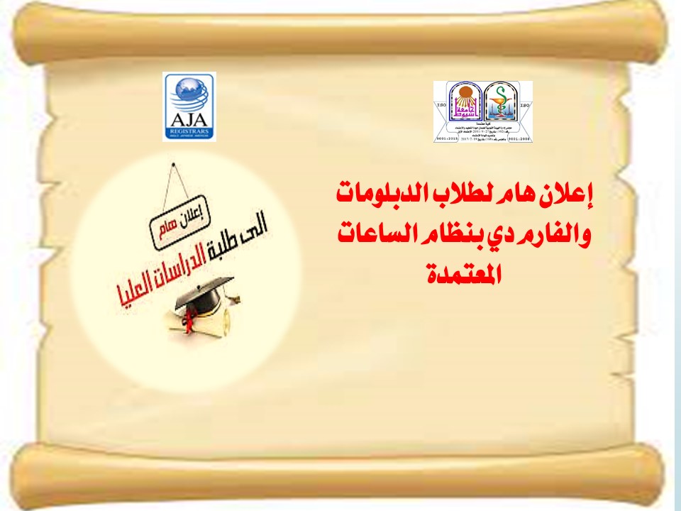 إعلان هام لطلاب الدبلومات والفارم دي بنظام الساعات المعتمدة على الطلاب الحضور لإدارة الدراسات العليا لتسجيل وسداد رسوم المقررات الدراسية 4 أبريل 2022