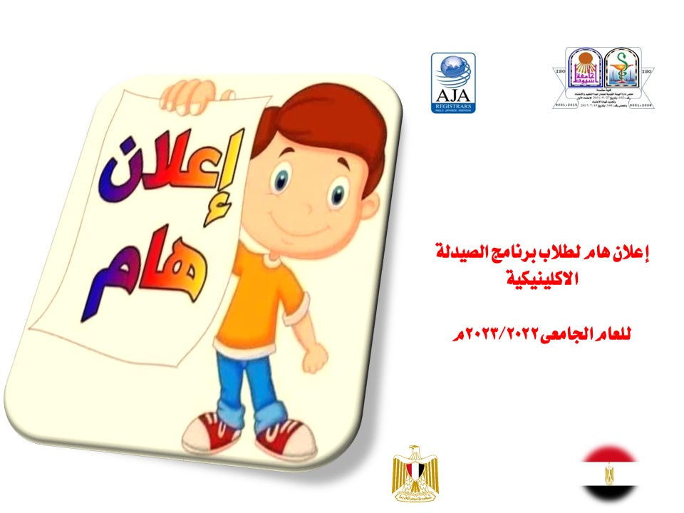 إعلان هام لطلاب برنامج الصيدلة الاكلينيكية للعام الجامعى 2022/2023م