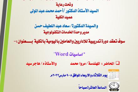 دورة تدريبية للسادة الإداريين والعاملين باليومية بالكلية بـــــعنوان: اساسيات Word