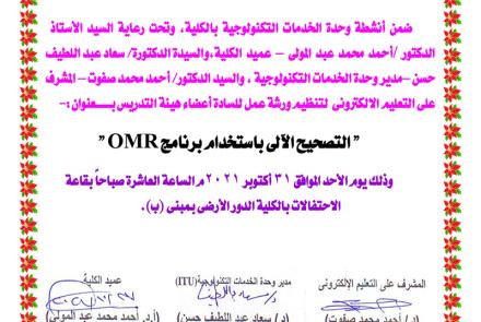 ورشة عمل للسادة أعضاء هيئة التدريس بعنوان" التصحيح الآلى باستخدام برنامج OMR "