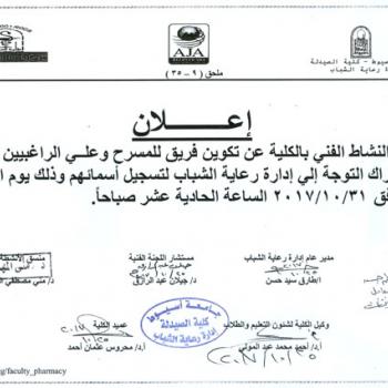 وجه السيد الأستاذ الدكتور / محروس عثمان أحمد -عميد كلية الصيدلة- جامعة أسيوط بتخصيص دقيقة من اجتماع مجلس الكلية وكذلك المحاضرات الدراسية للوقوف حدادا وترحما علي أروح شهداء الوطن من ضباط وجنود…