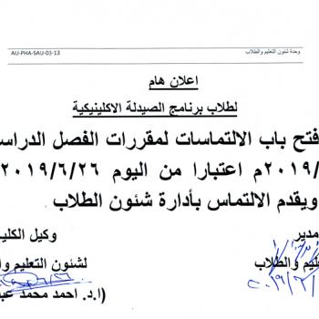 سوف يعقد بمشيئة الله تعالي اجتماع اللجنة الإدارية العليا لبرنامج الصيدلة الإكلينيكية بكلية الصيدلة وذلك يوم الاثنين الموافق 24-6-2019م في تمام الساعة الثانية عشر ظهراً بقاعة مكتب السيد الأستاذ…