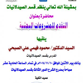 محاضرة عن (مهارات الاتصال الفعال) يلقيها السيد الدكتور/ علاء عرفات حيالله بكلية الصيدلة بعنوان "Effective Communication Skills" يوم الأربعاء الموافق 5/11/2014م.