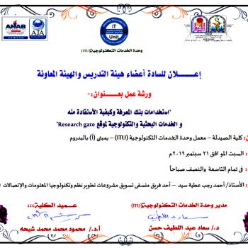 سوف يعقد بمشيئة الله تعالي اجتماع لجنة المختبرات والأجهزة العلمية بكلية الصيدلة يوم الأربعاء الموافق 18-9-2019م في تمام الساعة الحادية عشر صباحاً وذلك بمكتب السيد الأستاذ الدكتور/ وكيل الكلية لشئون…