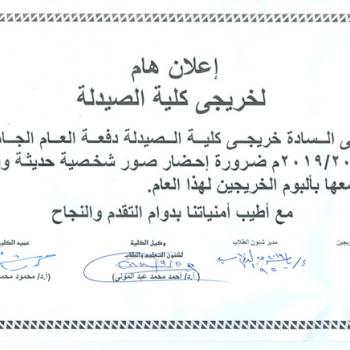 سوف يعقد بمشيئة الله تعالي اجتماع اللجنة التنفيذية لبرنامج الصيدلة الإكلينيكية يوم الاثنين الموافق 9-9-2019م ، الساعة العاشرة صباحاً وذلك بدعوة من السيد الأستاذ الدكتور/ محمود محمد شيحه – عميد كلية…