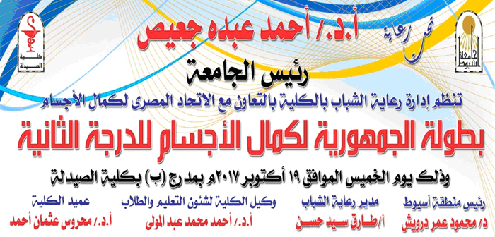 بطولة الجمهورية لكمال الأجسام للدرجة الثانية يوم الخميس الموافق 19/10/2017م. 17 أكتوبر 2017 بطولة الجمهورية لكمال الأجسام للدرجة الثانية يوم الخميس الموافق 19/10/2017م.