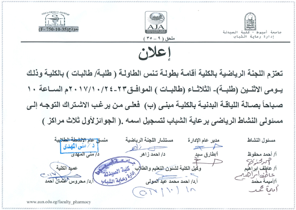 بطولة تنس الطاولة (طلبه/طالبات) بالكلية يوم الاثنين(طلبه) والثلاثاء (طالبات) الموافق 23-24/10/2017م. 18 أكتوبر 2017 بطولة تنس الطاولة (طلبه/طالبات) بالكلية يوم الاثنين(طلبه) والثلاثاء (طالبات) الموافق 23-24/10/2017م.
