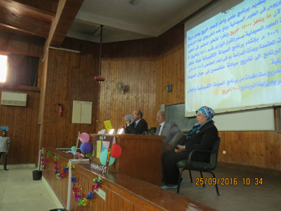 أقيمت إحتفالية إستقبال الطلاب الجدد لبرنامج بكالوريوس الصيدلة وبرنامج الصيدلة الإكلينيكية للعام الجامعي 2016/2017م ، حيث تم خلال الإحتفالية الترحيب بالطلاب الجدد وتهنئتهم بالعام الجامعي الجديد وتعريفهم بالكلية بداية من الإدارات والمباني والأقسام والمعامل والمدرجات والأماكن الخدمية مثل شئون الطلاب ورعاية الشباب والمكتبات ومعامل الحاسب الآلي ومركز توزيع الكتاب والصيدلية المجتمعية والعيادة الطبية وأماكن المحاضرات والسكاشن بالكلية والكليات المشتركة ، وكذلك تعريف الطالب بأهمية إشتراكه في الأنشطة الطلابية والتواصل مع المرشد الأكاديمي وأهمية حضور التربية العسكرية خلال فترة الدراسة الجامعية وكذلك الإلتزام بالحضور والحفاظ على الأجهزة والأدوات والمنشآت والنظافة وتقديم عرض عن الخدمات التى تقدم للطلاب من خلال المواقع الألكترونية ، وايضا تقديم عرض عن الأمن المعملي للطلاب الجدد عن كيفية التعامل الآمن مع الكيماويات والأدوات المعملية وكيفية التصرف حال التعرض لأى حادث.