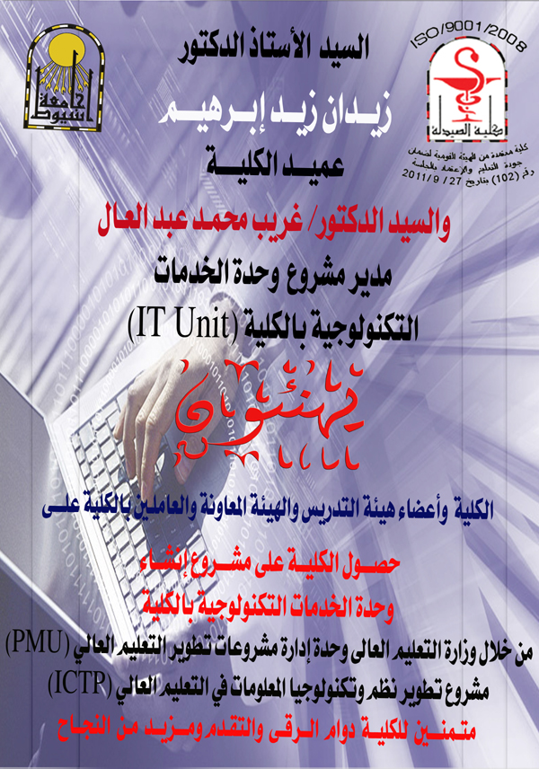 حصول كلية الصيدلة علي مشروع إنشاء وحدة الخدمات التكنولوجية. 26 أكتوبر 2013 حصول كلية الصيدلة علي مشروع إنشاء وحدة الخدمات التكنولوجية.
