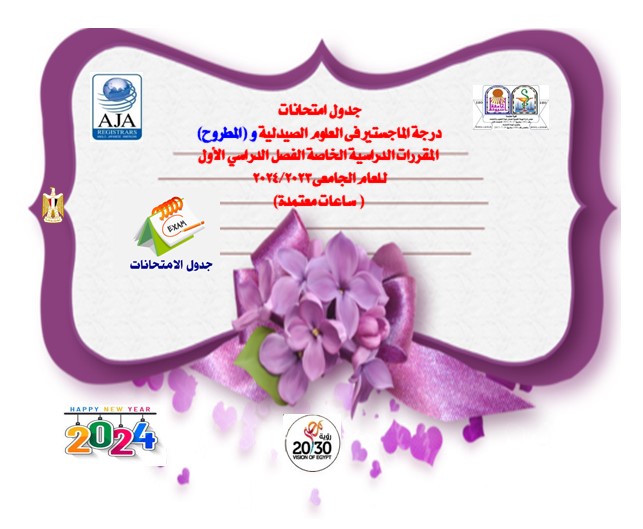 جدول امتحانات درجة الماجستير فى العلوم الصيدلية و (المطروح) المقررات الدراسية الخاصة الفصل الدراسي الأول للعام الجامعى 2024/2023 ( ساعات معتمدة) 8 يناير 2024