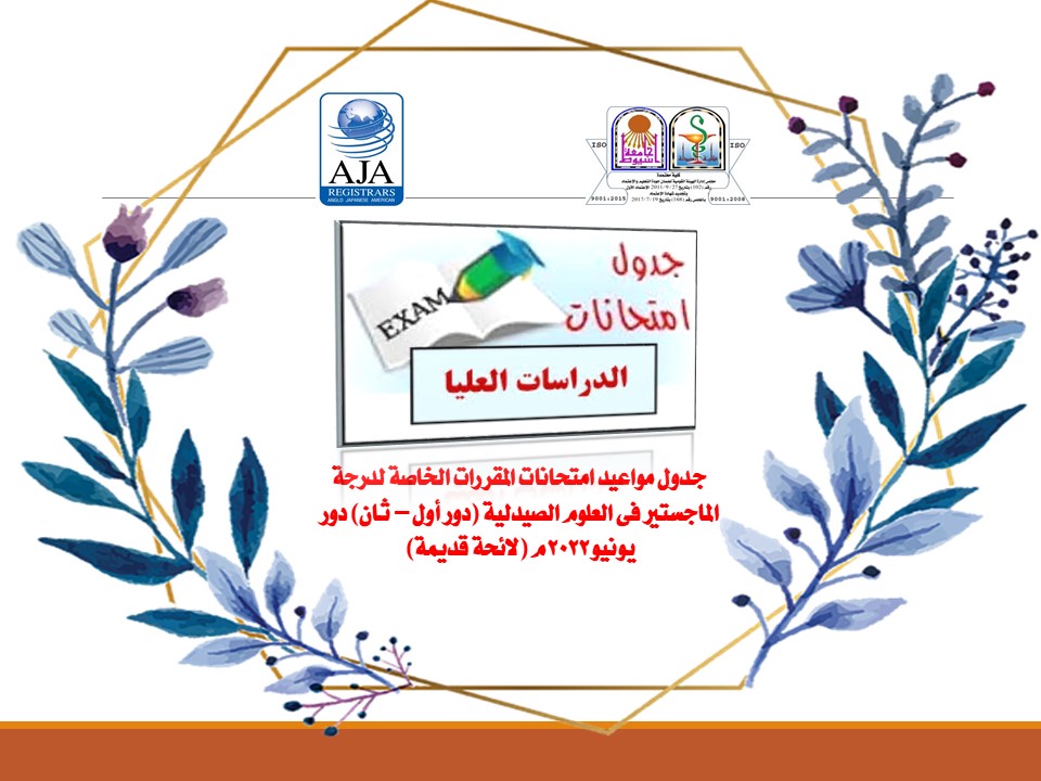 جدول مواعيد امتحانات المقررات الخاصة لدرجة الماجستير فى العلوم الصيدلية (دور أول – ثان) دور يونيو 2022م (لائحة قديمة) 16 مايو 2022