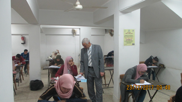 في صباح يوم السبت الموافق 23/12/2017م ومع بداية امتحانات الفصل الدراسي الأول للعام الجامعي 2017/2018م قام السيد الأستاذ الدكتور/ أحمد محمد عبد المولى - عميد الكلية بجولة تفقدية للجان امتحانات الفصل الدراسي الأول بمجمع المدرجات وصالات الامتحانات ، حيث يعقد امتحان مادة (ميكروبيولوجيا عامة ومناعة) للفرقة الثانية.