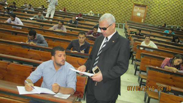 في صباح يوم الاثنين الموافق 7/5/2018 م ومع بداية امتحانات الفصل الدراسي الثاني للعام الجامعي 2017/2018م قام السيد الأستاذ الدكتور/ أحمد محمد عبد المولى - عميد الكلية بجولة تفقدية للجان امتحانات الفصل الدراسي الثاني بمجمع المدرجات وصالات الامتحانات ومدرجات الشرح ، حيث يعقد امتحان مادة (المعايير الحيوية والإحصاء الحيوي) للفرقة الرابعة.