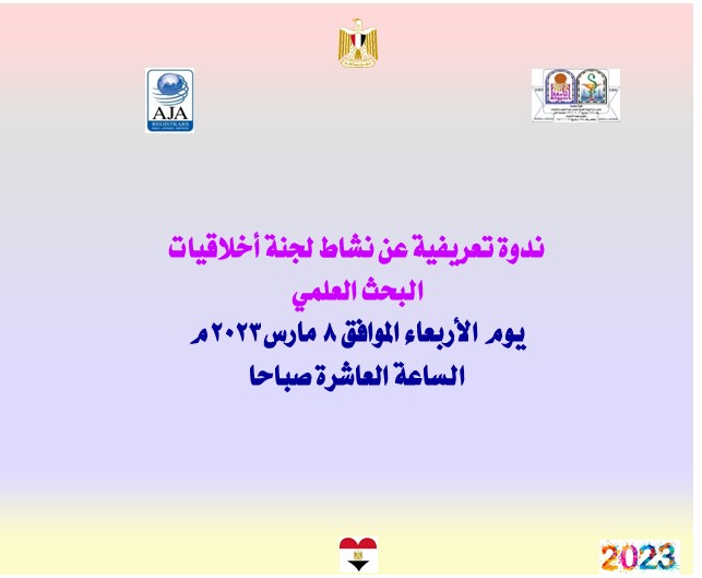 ندوة تعريفية عن نشاط لجنة أخلاقيات البحث العلمي يوم الأربعاء الموافق 8 مارس 2023م الساعة العاشرة صباحا 5 مارس 2023