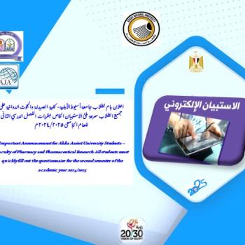 اعلان هام لطلاب جامعة أسيوط الأهلية- كلية الصيدلة والبحوث الدوائية على جميع الطلاب سرعة ملئ الاستبيان الخاص بمقررات الفصل الدرسي الثانى للعام الجامعى 2024/2025م