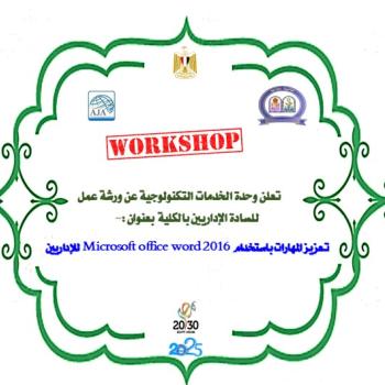 تعلن وحدة الخدمات التكنولوجية عن ورشة عمل للسادة الإداريين بالكلية بعنوان:-تعزيز المهارات باستخدام Microsoft office word 2016 للإداريين