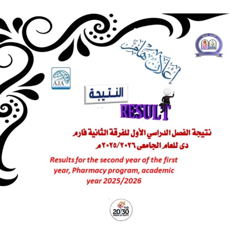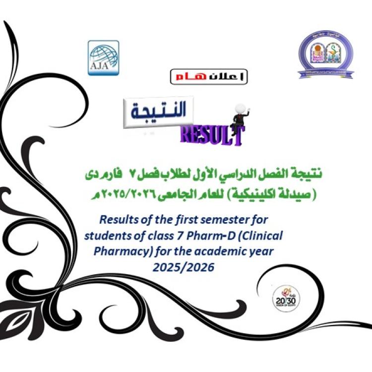 نتيجة الفصل الدراسي الأول لطلاب فصل 7 فارم دى (صيدلة اكلينيكية) للعام الجامعى 2025/2026م