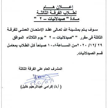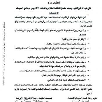 سوف يعقد بمشيئة الله تعالي اجتماع مجلس قسم الكيمياء التحليلية الصيدلية بكلية الصيدلة رقم (467) وذلك يوم الاثنين…