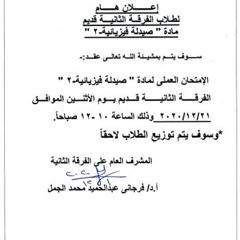 سوف يعقد بمشيئة الله تعالي اجتماع مجلس قسم الصيدلة الصناعية بكلية الصيدلة رقم (472) وذلك يوم الخميس الموافق 3-12-2020م…