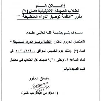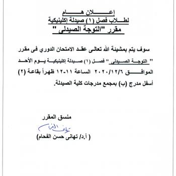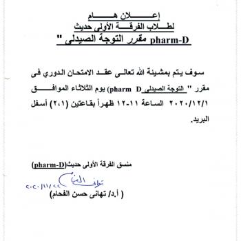 …سوف يعقد بمشيئة الله تعالي اجتماع مجلس قسم الصيدلة الإكلينيكية بكلية الصيدلة رقم (54) وذلك يوم الأربعاء الموافق 25-11-…