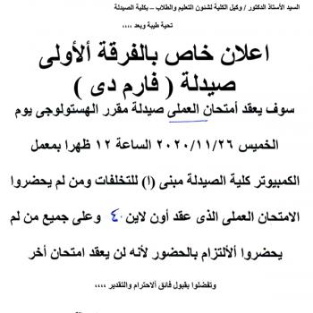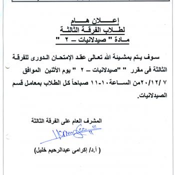 سوف يعقد بمشيئة الله تعالي اجتماع مجلس كلية الصيدلة يوم الأربعاء الموافق 25-11-2020م الساعة العاشرة صباحاً وذلك…