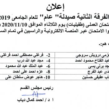 سوف يعقد بمشيئة الله تعالي اجتماع مجلس قسم العقاقير بكلية الصيدلة رقم (34) وذلك يوم الاثنين الموافق 9-11-2020م الساعة…