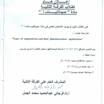 سوف يعقد بمشيئة الله تعالي اجتماع مجلس قسم الصيدلانيات بكلية الصيدلة رقم (481) وذلك يوم الاثنين الموافق 9-11-2020م…