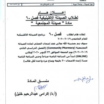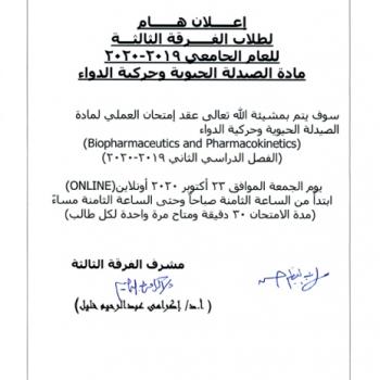 سوف يعقد بمشيئة الله تعالي اجتماع مجلس قسم الصيدلة الصناعية بكلية الصيدلة رقم (470) وذلك يوم الأحد الموافق 18-10-2020م…