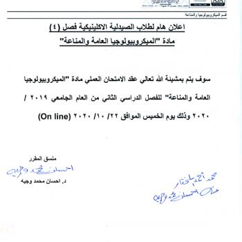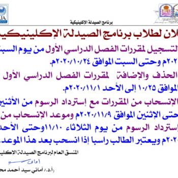 سوف يعقد بمشيئة الله تعالي اجتماع لجنة خدمة المجتمع وتنمية البيئة بكلية الصيدلة يوم الأربعاء الموافق 14-10-2020م في…