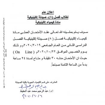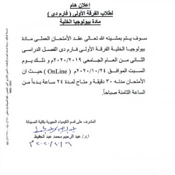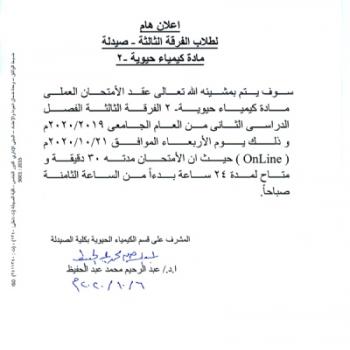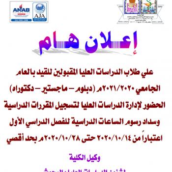 سوف يعقد بمشيئة الله تعالي اجتماع لجنة الدراسات العليا والبحوث بكلية الصيدلة يوم الثلاثاء الموافق 13-10-2020م الساعة…
