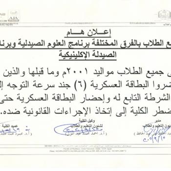 سوف يعقد بمشيئة الله تعالي اجتماع مجلس كلية الصيدلة يوم الأحد الموافق 20-9-2020م الساعة الحادية عشر صباحاً وذلك بمقر…