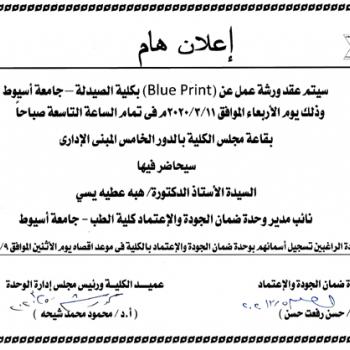 في إطار أنشطة وحدة ضمان الجودة والإعتماد سيتم بمشيئة الله تعالي عقد ورشة عمل عن (Blue Print) ، وذلك يوم الأربعاء…