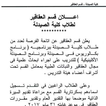 سوف يعقد بمشيئة الله تعالي اجتماع لجنة شئون التعليم والطلاب بكلية الصيدلة يوم الأربعاء الموافق 10-5-2017م الساعة العاشرة…