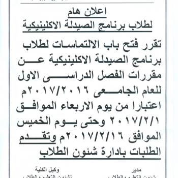 وافق مجلس كلية الصيدلة بجلسته رقم (638) المنعقدة بتاريخ 19/1/2017م والممتد حتى 23/1/2017م علي إلغاء…